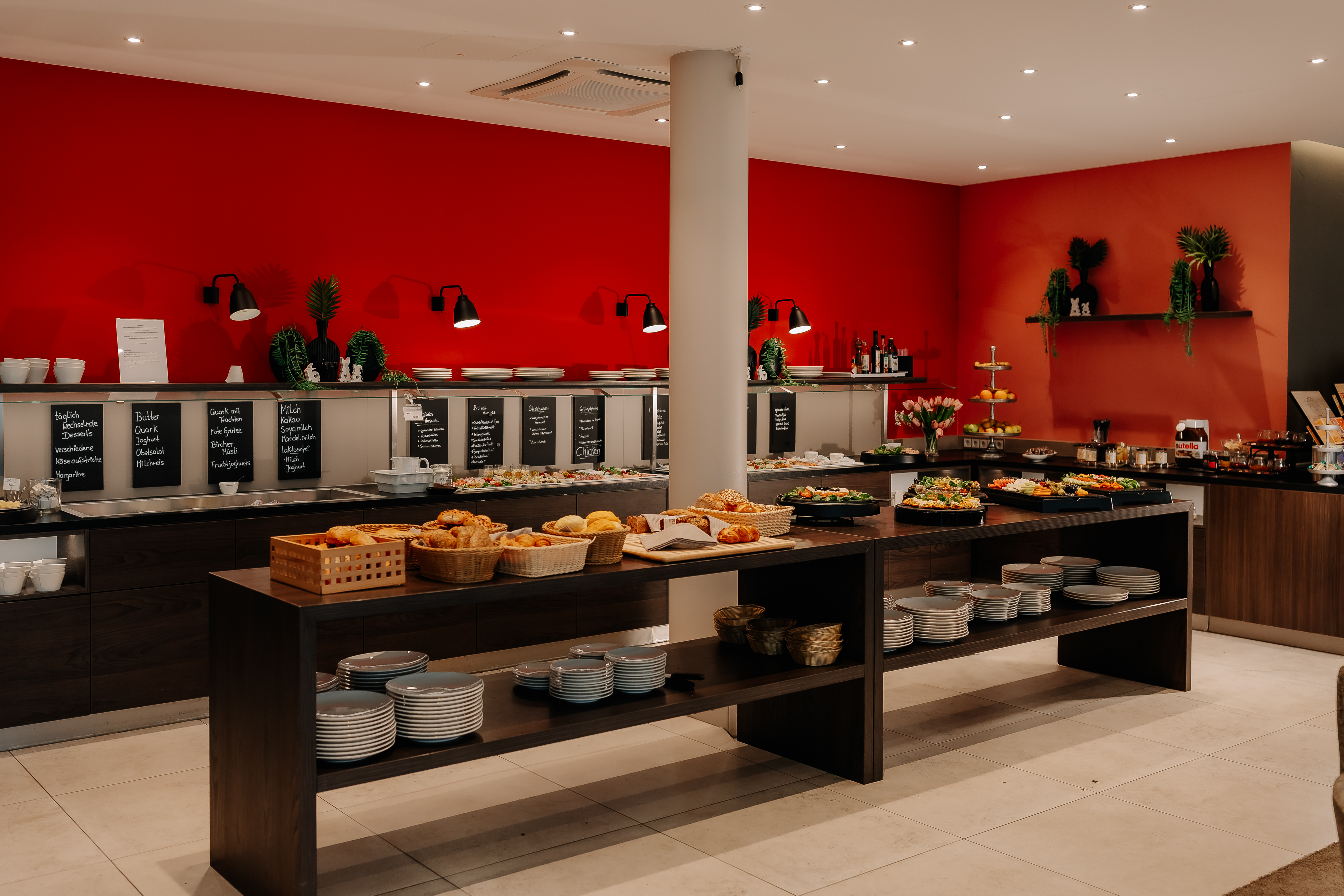 Der Tag beginnt im großzügigen Frühstücksrestaurant mit einem abwechslungsreichen Buffet: frische Brötchen, regionale Spezialitäten, Obst, Müsli und Kaffeespezialitäten.